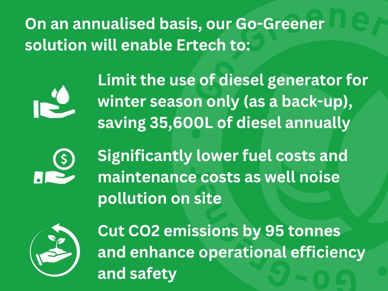 Prior to engaging Fuelfix, Ertech planned to use a standard 50kVA diesel generator, which posed several challenges: